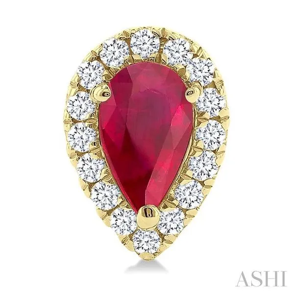 5x3 MM Pear Shape Ruby and 1/8 Ctw Single Cut Diamond Halo Precious Stud Earrings in 10K Yellow Gold Image 2 Adler's Diamonds Saint Louis, MO
