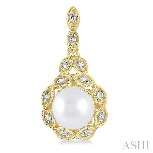 6 MM Cultured Pearl and 1/20 Ctw Round Cut Diamond Earrings in Yellow Gold Vermeil Image 3 Adler's Diamonds Saint Louis, MO