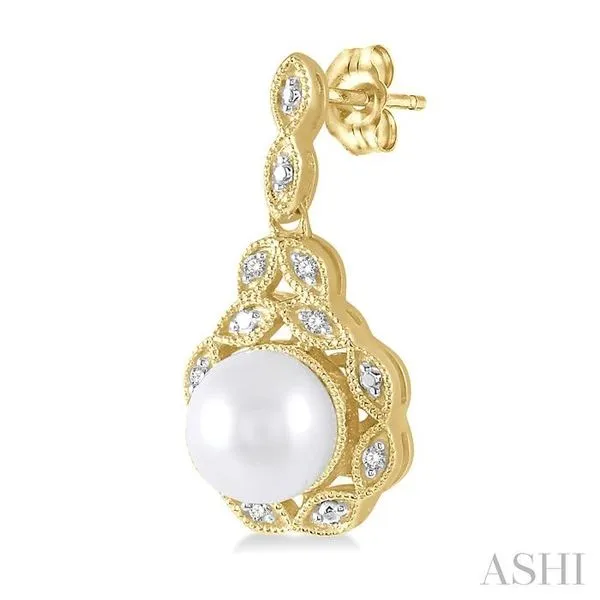 6 MM Cultured Pearl and 1/20 Ctw Round Cut Diamond Earrings in Yellow Gold Vermeil Image 2 Adler's Diamonds Saint Louis, MO