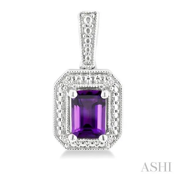 6X4 MM Octagon Shape Amethyst and 1/50 Ctw Round Cut Diamond Semi-Precious Earrings in Sterling Silver Image 2 Adler's Diamonds Saint Louis, MO