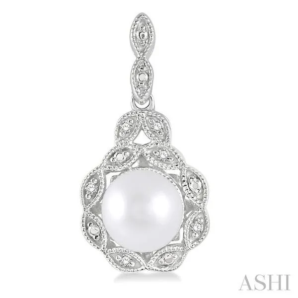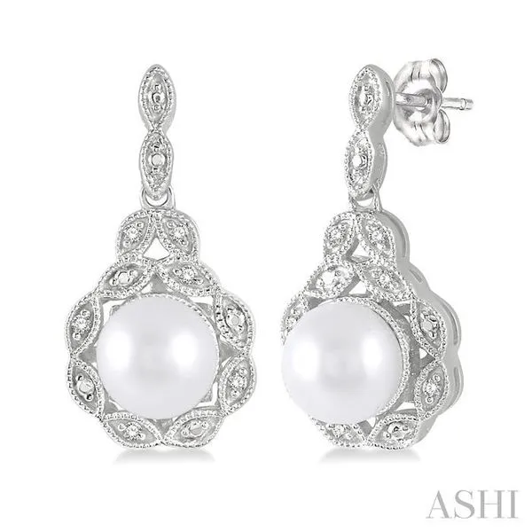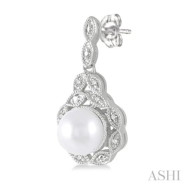 6X6 MM Cultured Pearl and 1/20 Ctw Single Cut Diamond Earrings in Sterling Silver Image 4 Adler's Diamonds Saint Louis, MO