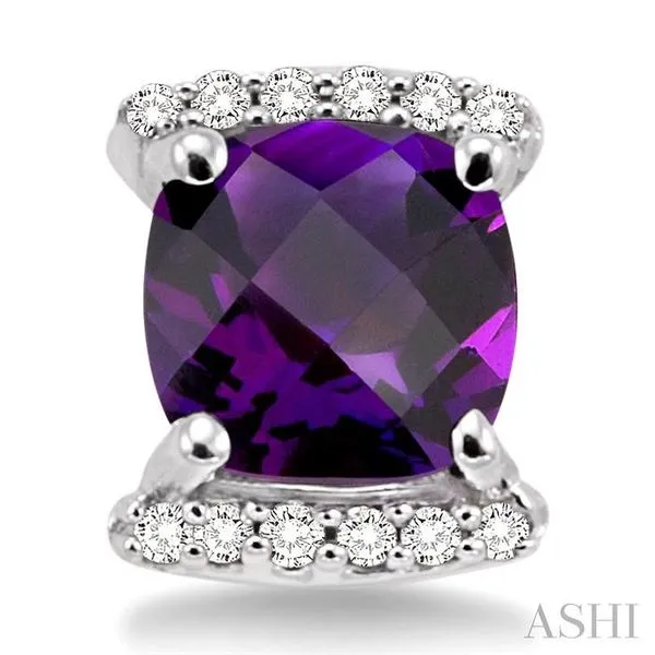 6x6 MM Cushion Shape Amethyst and 1/10 Ctw Round Cut Diamond Earrings in 14K White Gold Image 3 Adler's Diamonds Saint Louis, MO