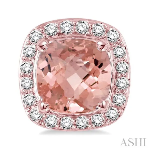 6x6 MM Cushion Shape Morganite and 1/4 Ctw Round Cut Diamond Earrings in 14K Rose Gold Image 2 Adler's Diamonds Saint Louis, MO