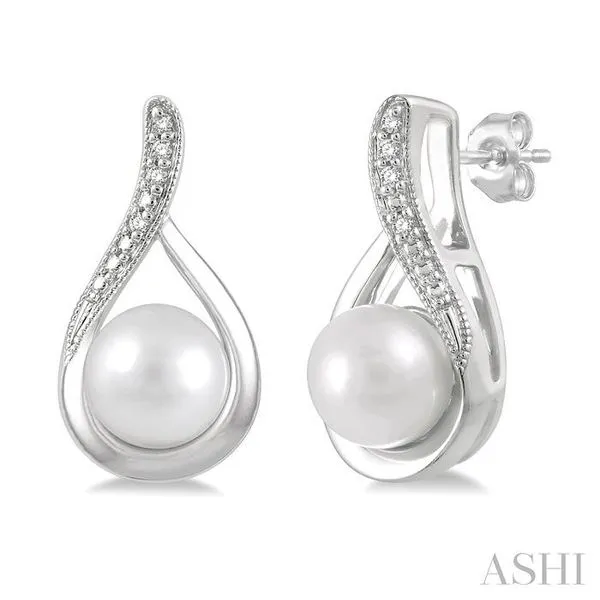 6x6 MM Drop Shape Cultured Pearls and 1/50 Ctw Round Cut Diamond Earring in Sterling Silver Image 2 Adler's Diamonds Saint Louis, MO