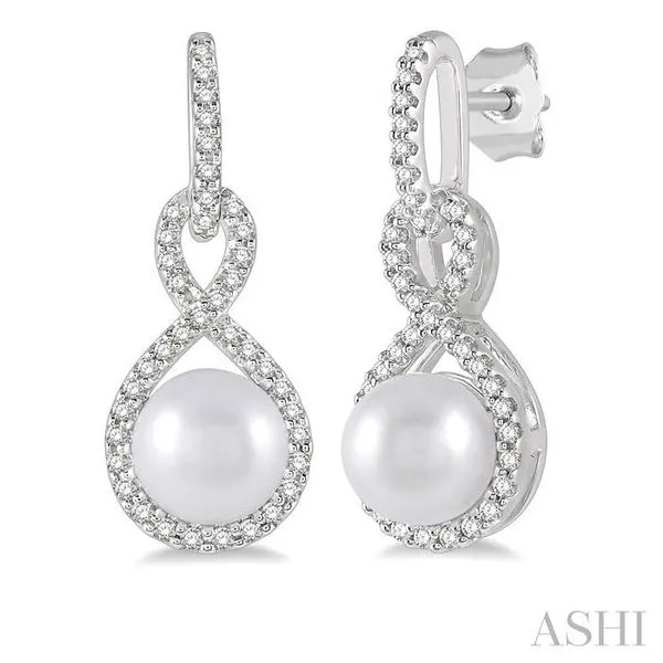 6x6 MM Round Shape Cultured Pearl and 1/4 Ctw Twisted Loop Round Cut Diamond Earring in 10K White Gold Image 4 Adler's Diamonds Saint Louis, MO