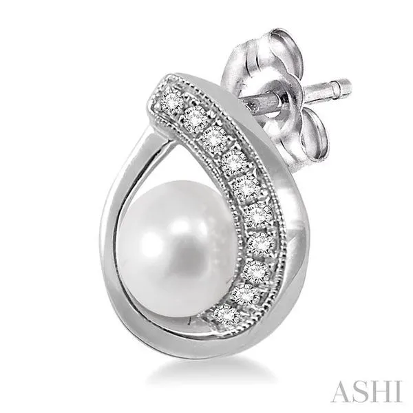 6x6 MM Round Shape Cultured Pearls and 1/10 Ctw Round Cut Diamond Earrings in 10K White Gold Image 2 Adler's Diamonds Saint Louis, MO