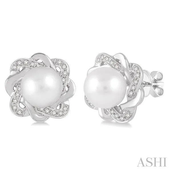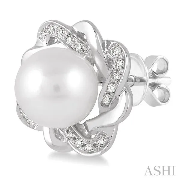 6x6 MM Round Shape Cultured Pearls and 1/10 Ctw Round Cut Diamond Earrings in Sterling Silver Image 3 Adler's Diamonds Saint Louis, MO