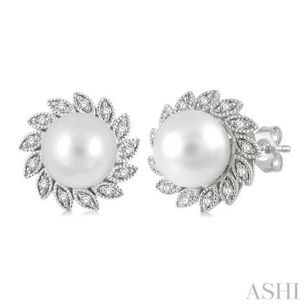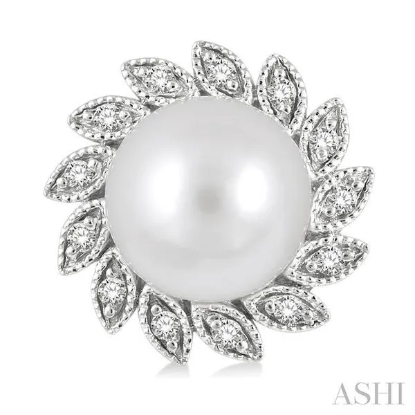 6x6 MM Round Shape Cultured Pearls and 1/10 Ctw Sunflower Round Cut Diamond Earrings in 10K White Gold Image 2 Adler's Diamonds Saint Louis, MO