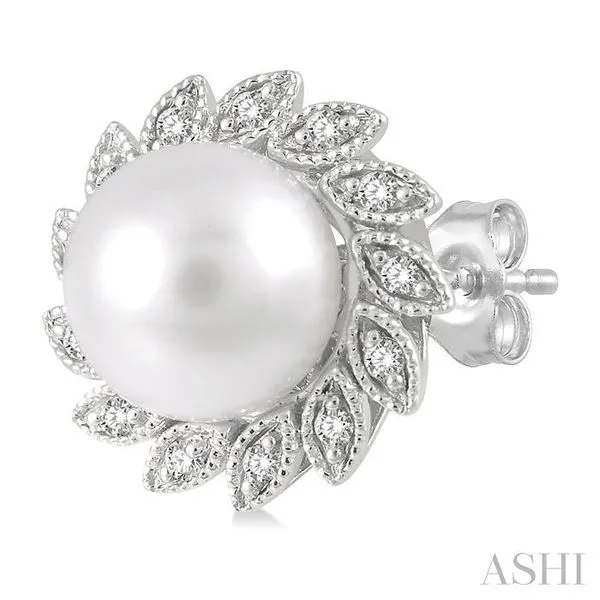 6x6 MM Round Shape Cultured Pearls and 1/10 Ctw Sunflower Round Cut Diamond Earrings in 10K White Gold Image 3 Adler's Diamonds Saint Louis, MO
