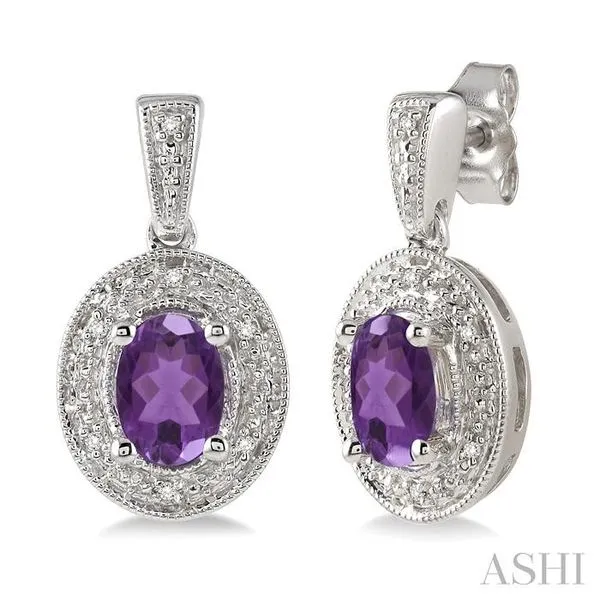 7x5 MM Oval Cut Amethyst and 1/20 Ctw Single Cut Diamond Earrings in Sterling Silver Image 2 Adler's Diamonds Saint Louis, MO