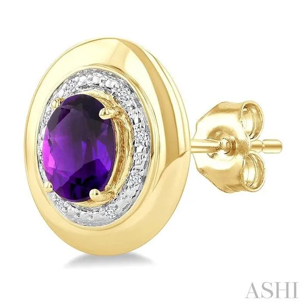 7X5 MM Oval Shape Amethyst and 1/20 Ctw Round Cut Diamond Semi-Precious Earrings in Yellow Gold Vermeil Image 2 Adler's Diamonds Saint Louis, MO