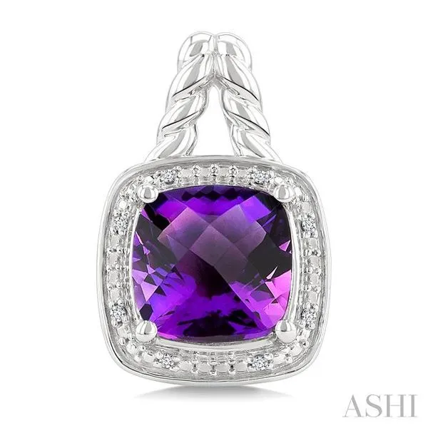 8 MM Cushion Shape Amethyst and 1/20 Ctw Round Cut Diamond Semi-Precious Earrings in Sterling Silver Image 3 Adler's Diamonds Saint Louis, MO