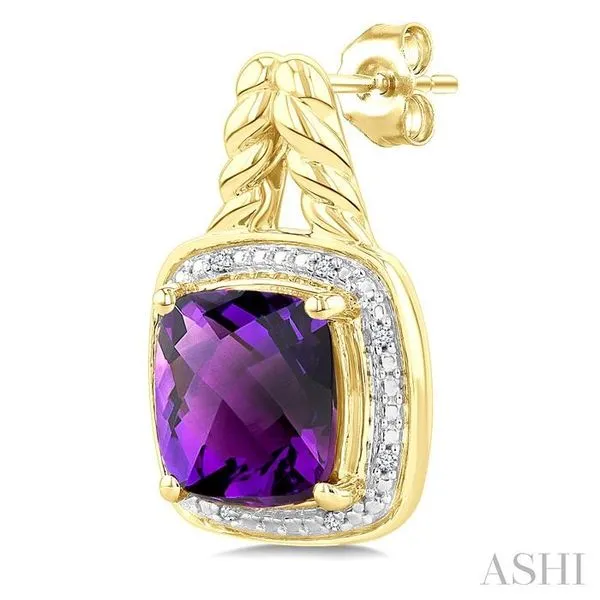 8 MM Cushion Shape Amethyst and 1/20 Ctw Round Cut Diamond Semi-Precious Earrings in Yellow Gold Vermeil Image 2 Adler's Diamonds Saint Louis, MO