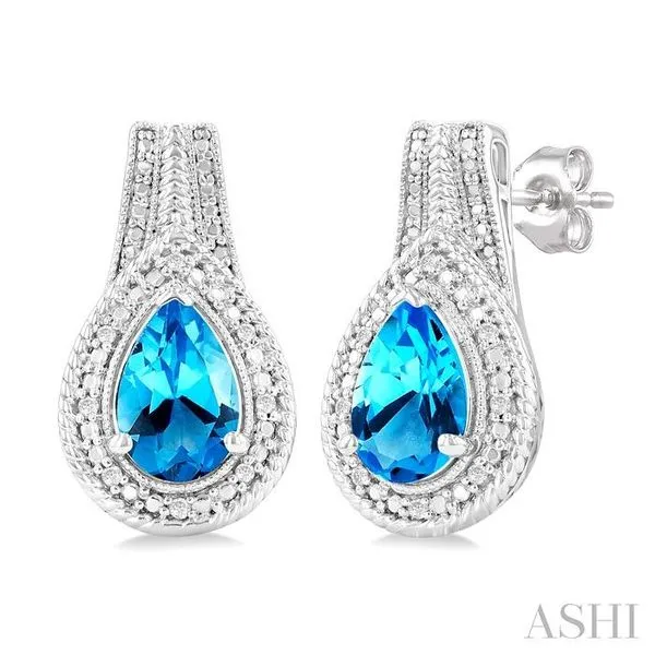 8X5 MM Pear Shape Blue Topaz and 1/20 Ctw Round Cut Diamond Semi-Precious Earrings in Sterling Silver Image 2 Adler's Diamonds Saint Louis, MO