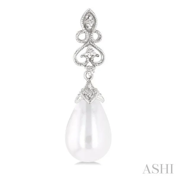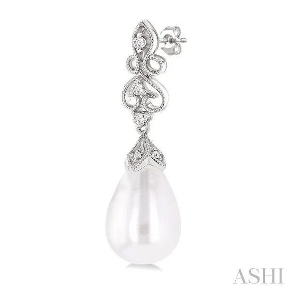 8X6 MM Cultured Pearl and 1/20 Ctw Round Cut Diamond Earrings in 10K White Gold Image 3 Adler's Diamonds Saint Louis, MO