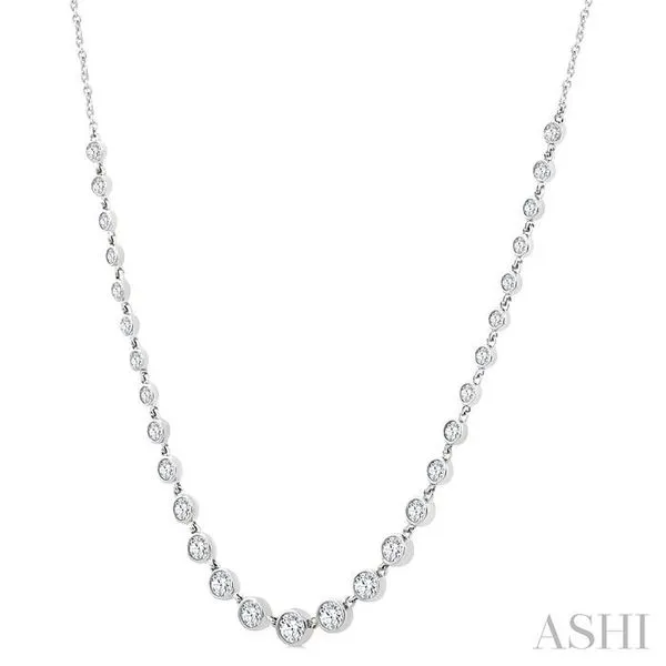 1 1/4 Ctw Halfway Graduated Bezel Set Round Cut Diamond Tennis Necklace in 14K White Gold Image 2 Adler's Diamonds Saint Louis, MO
