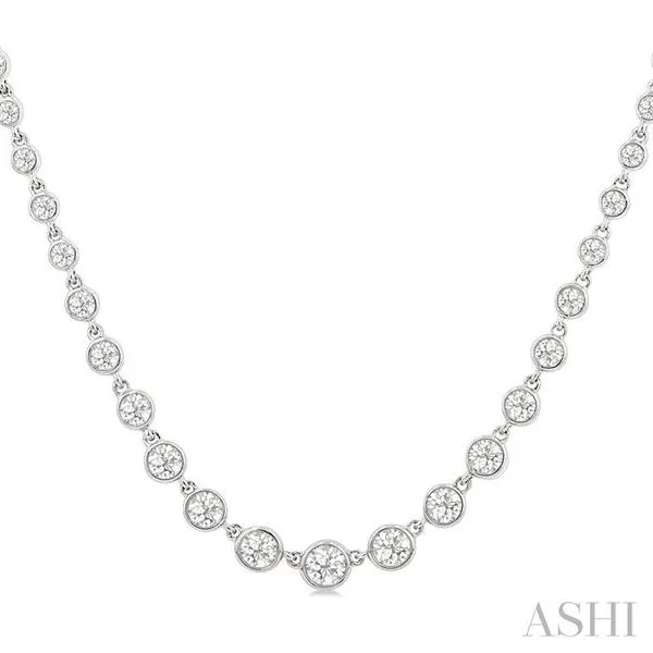 1 1/4 Ctw Halfway Graduated Bezel Set Round Cut Diamond Tennis Necklace in 14K White Gold Image 3 Adler's Diamonds Saint Louis, MO