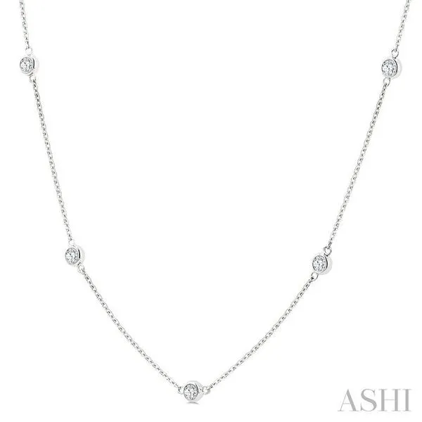 1 Ctw Bezel Set Round Cut Diamond Station Necklace in 14K White Gold Image 2 Adler's Diamonds Saint Louis, MO