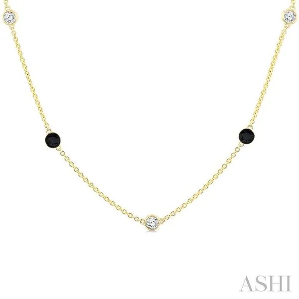 1 Ctw Black and White Round Cut Diamond Station Necklace in 14K Yellow Gold Image 2 Adler's Diamonds Saint Louis, MO