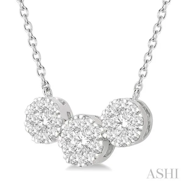 1/2 Ctw 3-Stone Lovebright Round Cut Diamond Necklace in 14K White Gold Image 2 Adler's Diamonds Saint Louis, MO