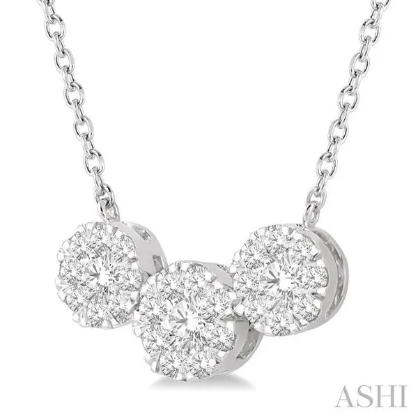 1/2 Ctw 3-Stone Lovebright Round Cut Diamond Necklace in 14K White Gold Image 2 Adler's Diamonds Saint Louis, MO