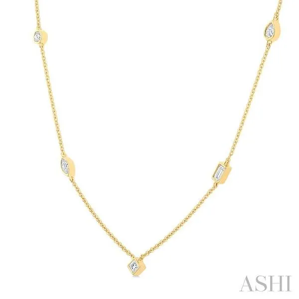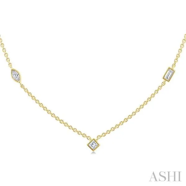 1/2 Ctw Bezel Set Mixed Cut Diamond Station Necklace in 14K Yellow Gold Image 2 Adler's Diamonds Saint Louis, MO