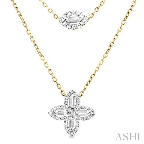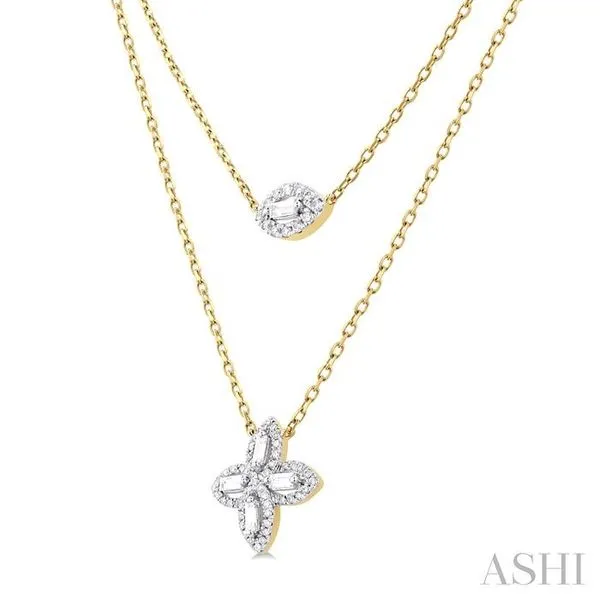 1/2 Ctw Floral Baguette and Round Cut Diamond Layered Fashion Necklace in 14K Yellow Gold Adler's Diamonds Saint Louis, MO