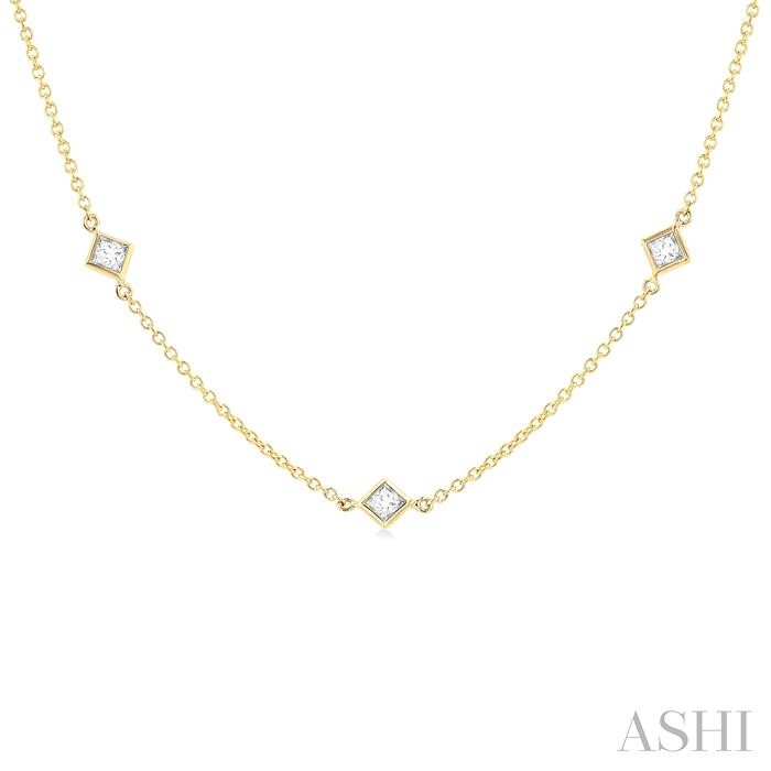 3. 1/2 Ctw Princess Cut Diamond Fashion Necklace in 14K Yellow Gold