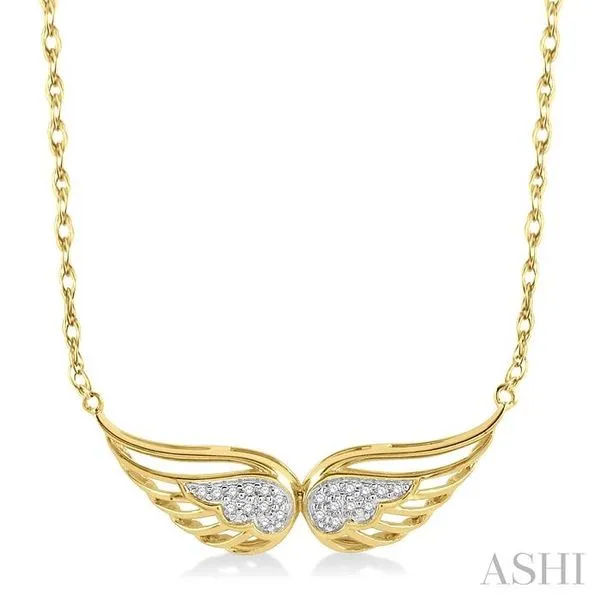 3. 1/20 Ctw Angel Wing Round Cut Diamond Necklace in 10K Yellow Gold