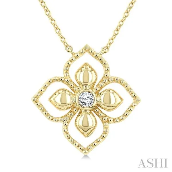 3. 1/20 Ctw Floral Medallion Bezel Set Round Cut Diamond Fashion Pendant in 10K Yellow Gold
