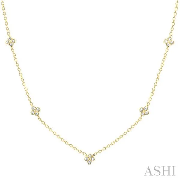 1/3 Ctw Clover Motif Bezel Set Round Cut Diamond Station Necklace in 10K Yellow Gold Image 2 Adler's Diamonds Saint Louis, MO