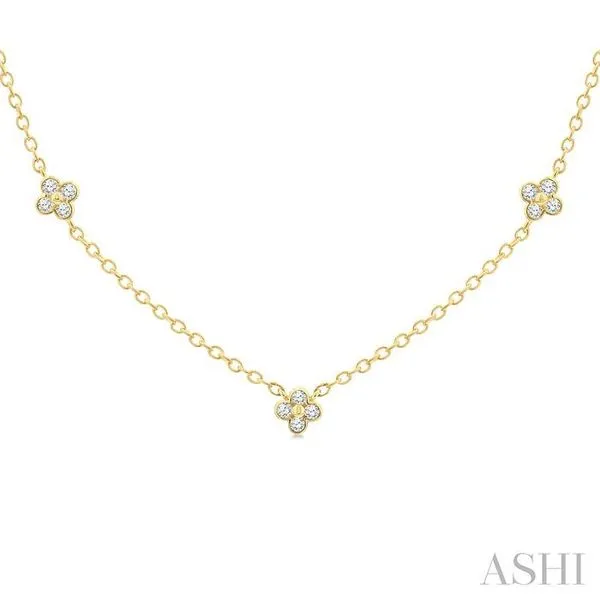 1/3 Ctw Clover Motif Bezel Set Round Cut Diamond Station Necklace in 10K Yellow Gold Image 3 Adler's Diamonds Saint Louis, MO