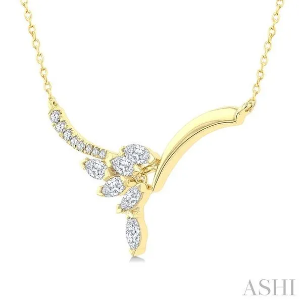 1/3 Ctw Leaf Motif Drop Marquise and Round Cut Diamond Fashion Necklace in 14K Yellow Gold Image 2 Adler's Diamonds Saint Louis, MO