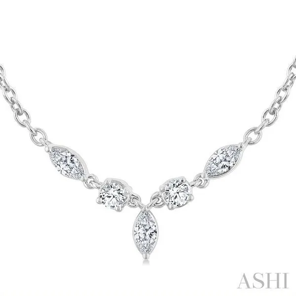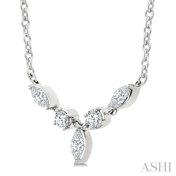 1/3 Ctw Marquise & Round Cut Diamond Necklace in 14K White Gold Image 2 Adler's Diamonds Saint Louis, MO