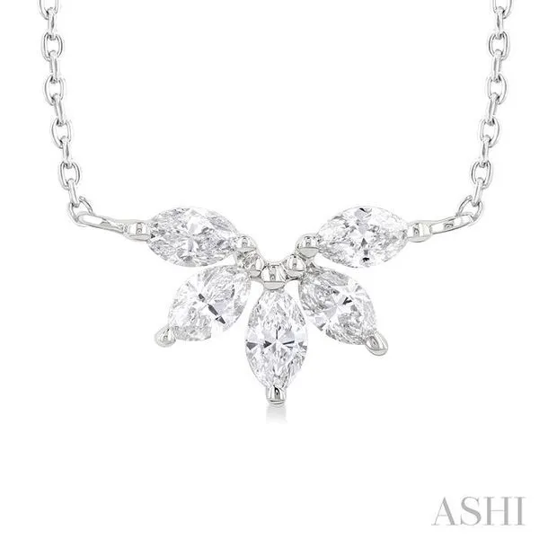 1/3 Ctw Semi-Circle Chevron Marquise Cut Diamond Fashion Necklace in 14K White Gold Image 2 Adler's Diamonds Saint Louis, MO