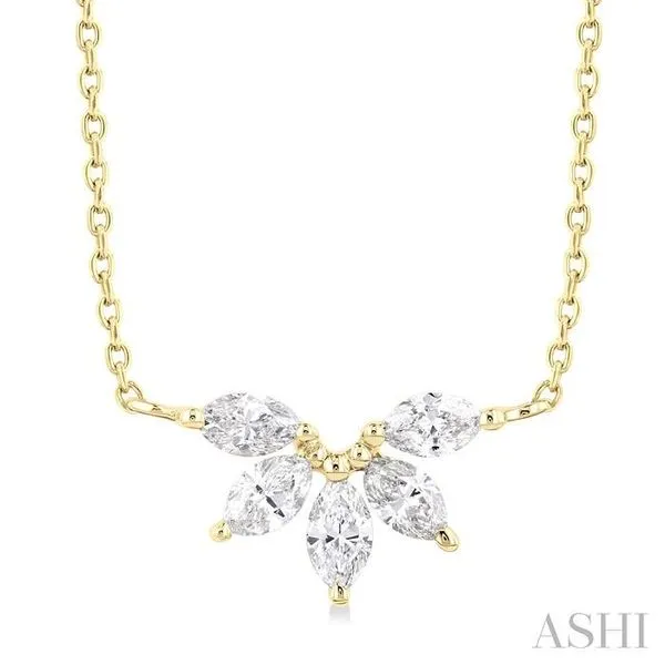 1/3 Ctw Semi-Circle Chevron Marquise Cut Diamond Fashion Necklace in 14K Yellow Gold Image 2 Adler's Diamonds Saint Louis, MO