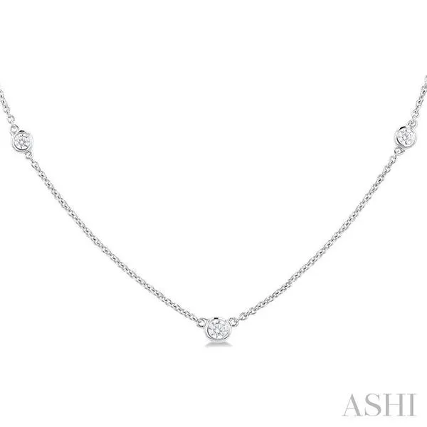 1/4 Ctw Bezel Set Round Cut Diamond Station Necklace in 14K White Gold Image 3 Adler's Diamonds Saint Louis, MO