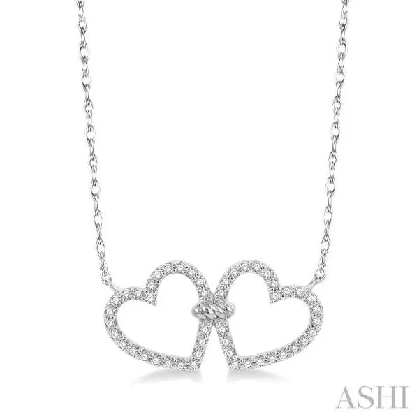 1/4 Ctw Coupled Twin Heart Round Cut Diamond Necklace in 10K White Gold Image 2 Adler's Diamonds Saint Louis, MO