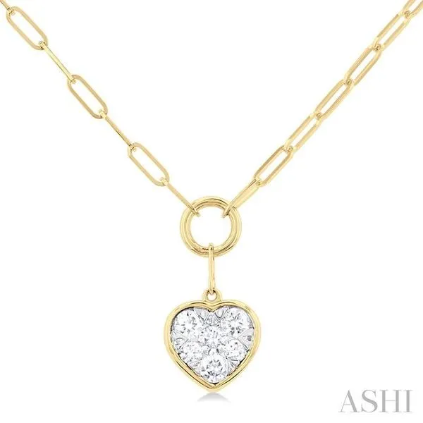 1/4 Ctw Lovebright Heart Shape Round Cut Diamond Paperclip Necklace in 14K Yellow & White Gold Adler's Diamonds Saint Louis, MO