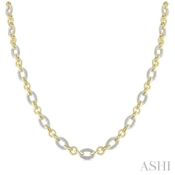 1/4 Ctw Oval Shaped Open Window Link Round Cut Diamond Necklace in Yellow Gold Vermeil Image 2 Adler's Diamonds Saint Louis, MO
