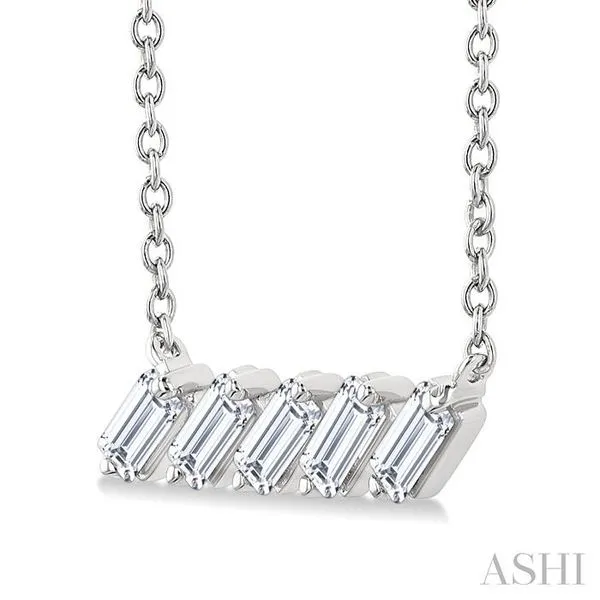 1/4 Ctw Semi-Reclined Baguette Cut Diamond Necklace in 14K White Gold Image 3 Adler's Diamonds Saint Louis, MO