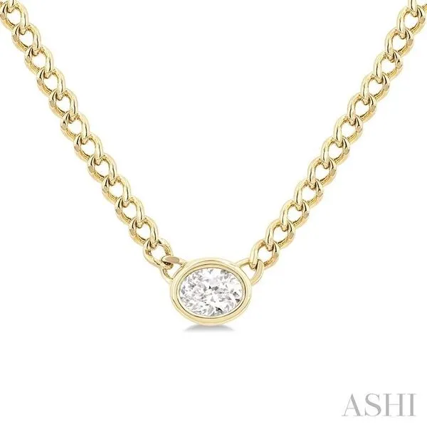 1/5 Ctw Bezel Set Oval Cut Diamond Curb Link Fashion Necklace in 14K Yellow Gold Image 3 Adler's Diamonds Saint Louis, MO