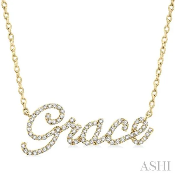 1/5 Ctw 'Grace' Script Name Round Cut Diamond Necklace in 10K Yellow Gold Adler's Diamonds Saint Louis, MO