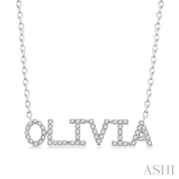 1/5 Ctw 'OLIVIA' Block Name Round Cut Diamond Necklace in 10K White Gold Adler's Diamonds Saint Louis, MO