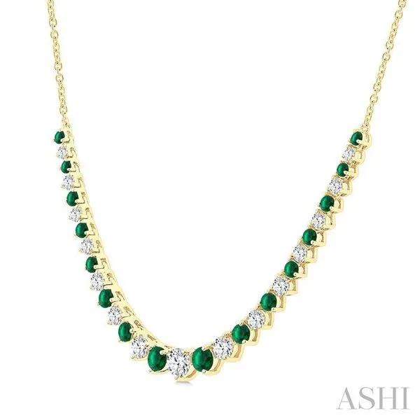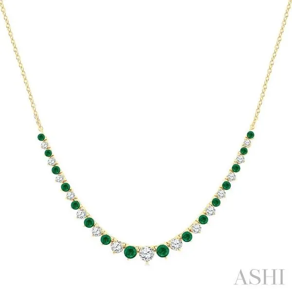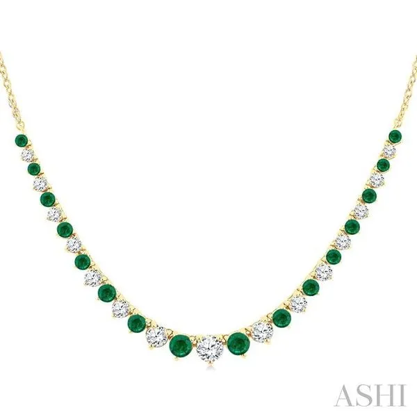 1.7 MM - 3 MM Round Shape Emerald and 3/4 Ctw Round Cut Diamond Precious Riviera Necklace in 14K Yellow Gold Image 2 Adler's Diamonds Saint Louis, MO