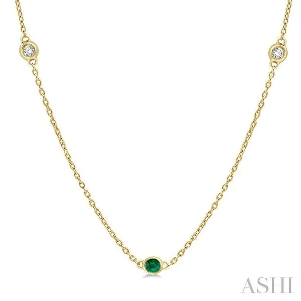 1.75 MM Emerald and 1/6 Ctw Round Cut Diamond Precious Station Necklace in 14K Yellow Gold Image 4 Adler's Diamonds Saint Louis, MO