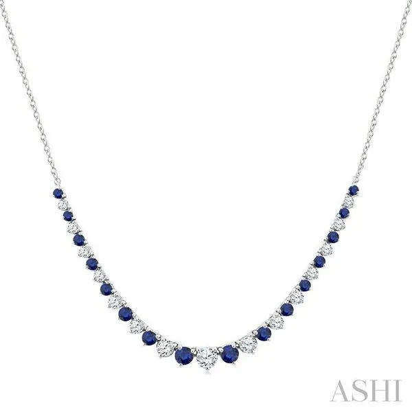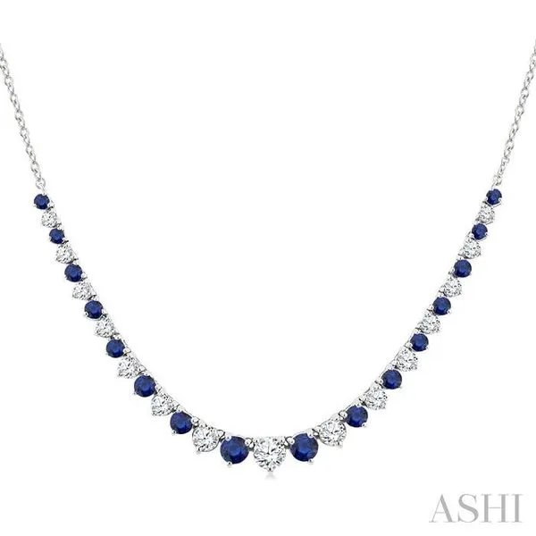 1.7MM - 3 MM Round Shape Sapphire and 3/4 Ctw Round Cut Diamond Precious Riviera Necklace in 14K White Gold Image 3 Adler's Diamonds Saint Louis, MO