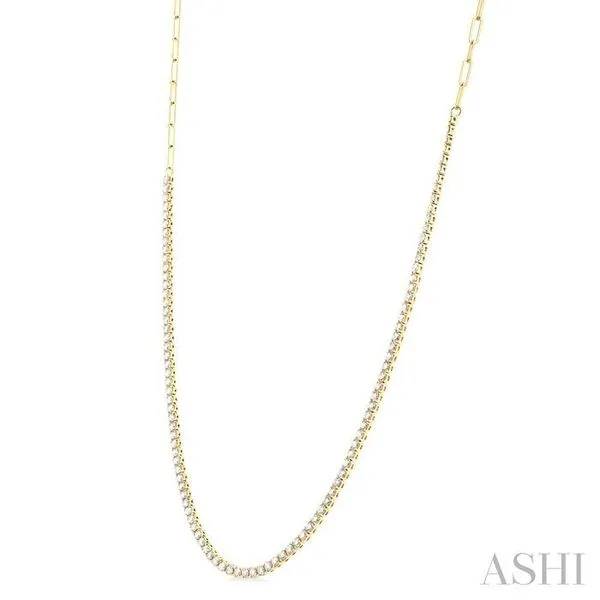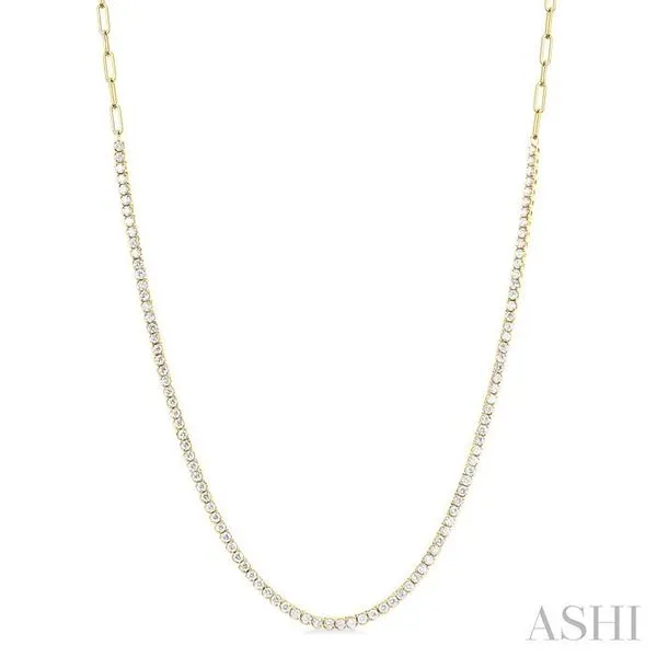2 5/8 Ctw Round Cut Diamond Paperclip Chain Tennis Necklace in 14K Yellow Gold Image 2 Adler's Diamonds Saint Louis, MO
