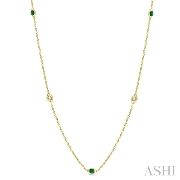 2.25 MM Emerald and 1/4 Ctw Round Cut Diamond Precious Station Necklace in 14K Yellow Gold Image 4 Adler's Diamonds Saint Louis, MO