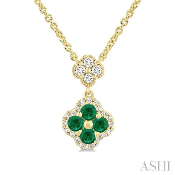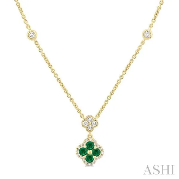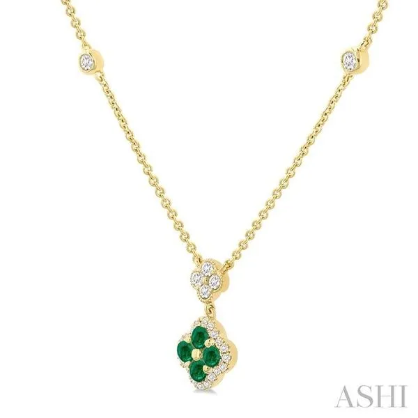 2.4 MM Round Shape Emerald and 1/4 Ctw Clover Round Cut Diamond Station Necklace in 14K Yellow Gold Image 2 Adler's Diamonds Saint Louis, MO